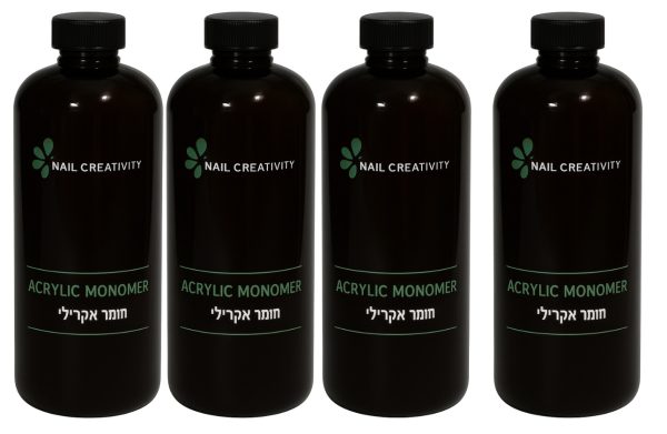 מבצע! 4 בקבוקים נוזל אקריל נייל קריאטיביטי 500 מ״ל – ורוד/סגול/שקוף
